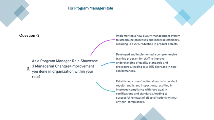 As a Program Manager Role,Showcase 3 Managerial Changes/improvement you done in organisation within your role?