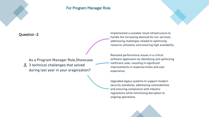 As a Program Manager Role,Showcase 3 technical challenges that solved during last year in your organisation
