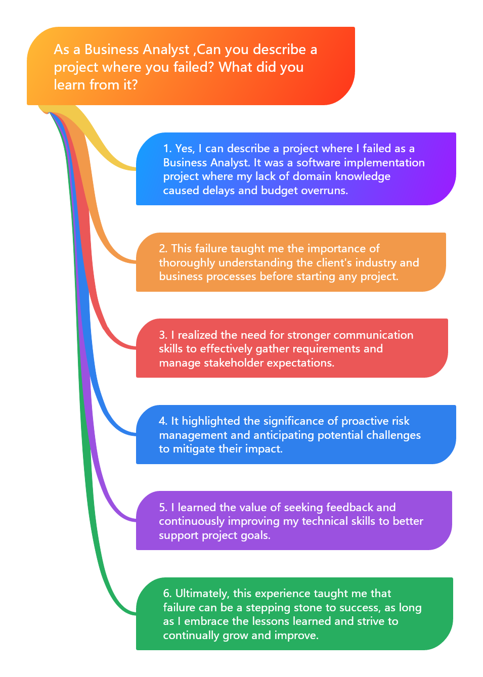 • Lack Of Domain Knowledge : Yes, I can describe a project where I failed as a Business Analyst. It was a software implementation project where my lack of domain knowledge caused delays and budget overruns.