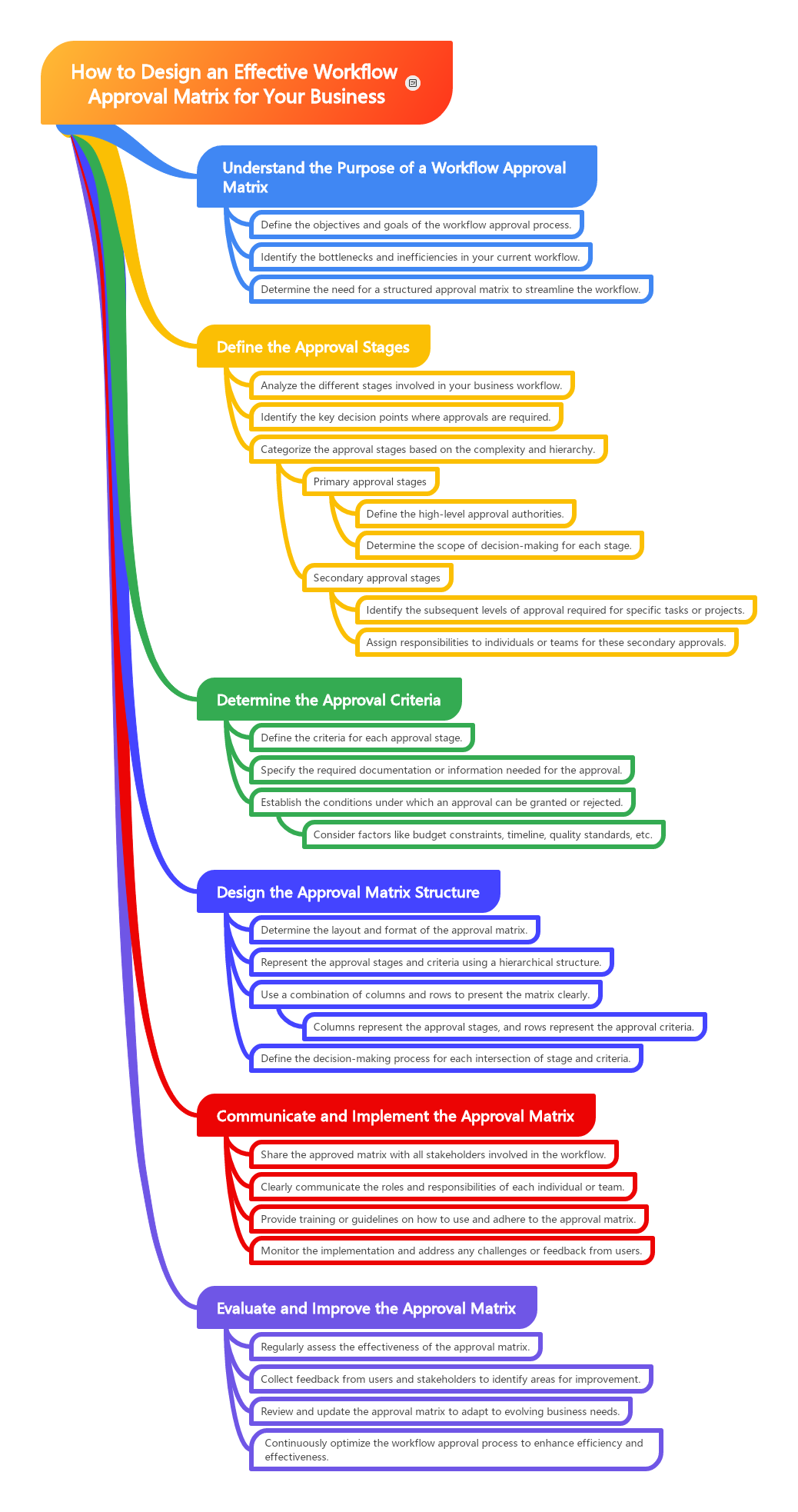 - Determine which departments or individuals are involved in each approval process and their roles.