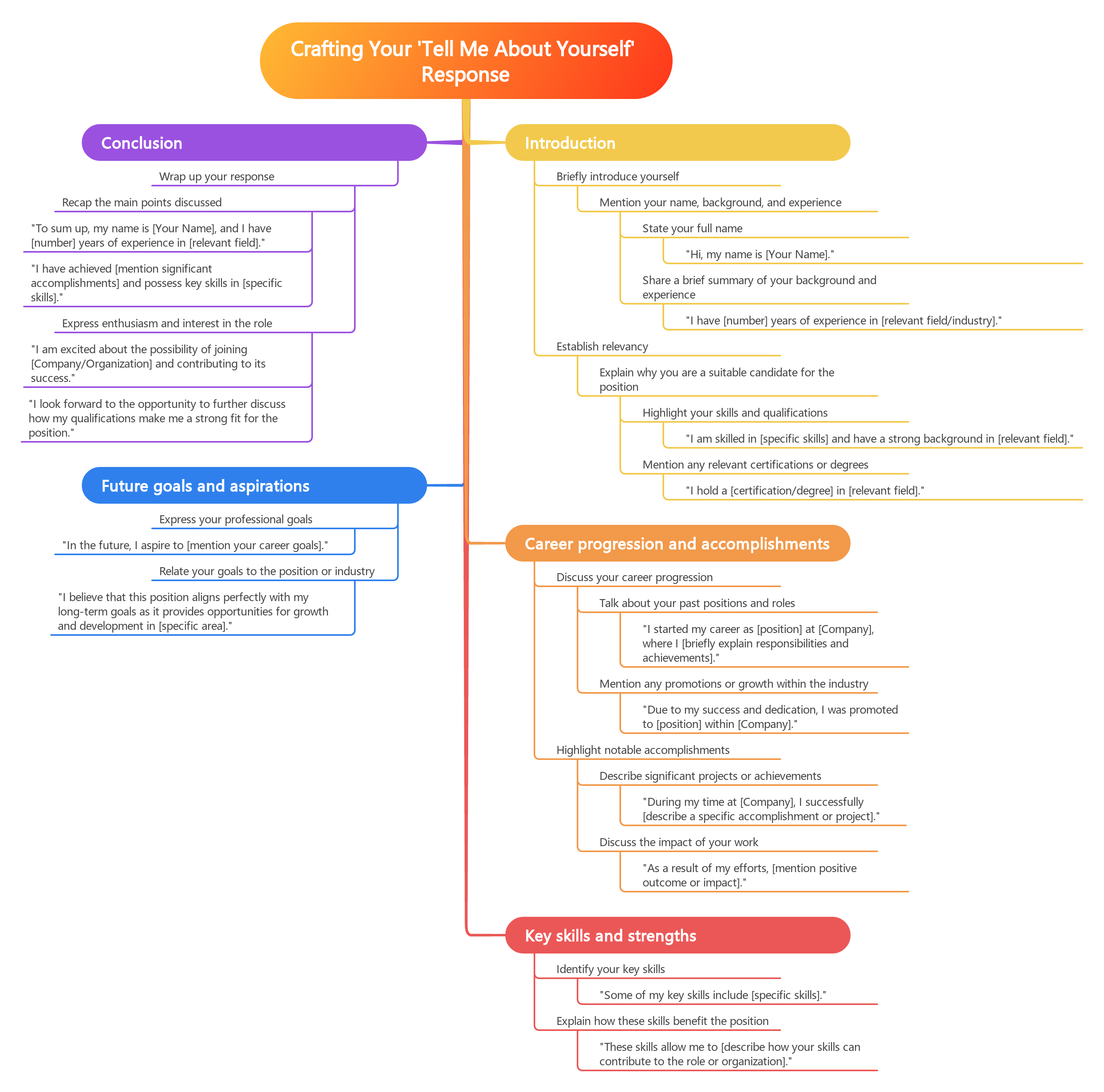 In conclusion, structuring your response for maximum impact requires careful preparation and thoughtful consideration. By following these key tips and crafting a well-organized and compelling answer to the “Tell me about yourself” question, job seekers who are changing careers can make a strong impression on potential employers and increase their chances of landing their dream job. Remember to practice your response before the interview and tailor it to the specific job you are applying for to ensure maximum impact.
