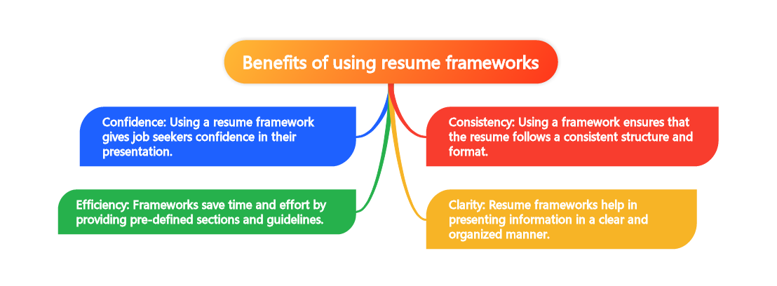 Resume frameworks provide a structured approach to creating effective resumes, ensuring consistency, clarity, efficiency, and confidence for job seekers. Popular frameworks include chronological, functional, and combination approaches. Using these frameworks and applying the provided tips can enhance the chances of getting noticed by recruiters and securing job opportunities.